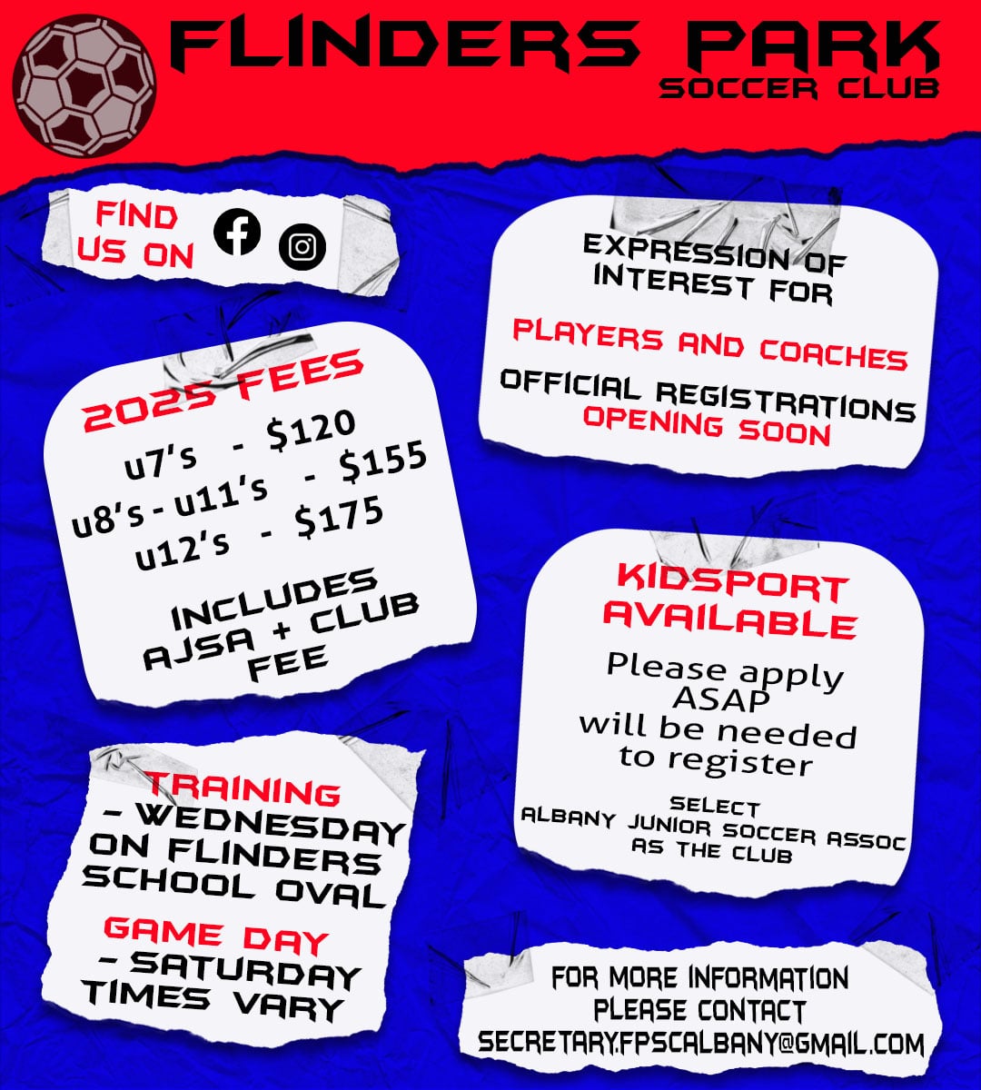 For those that are yet to, please do so ASAP - Contact secretary.fpscalbany@gmail.com with your child's name/ date of birth/ year group/ shirt size (size up by at 1 or 2 sizes).