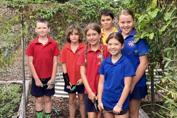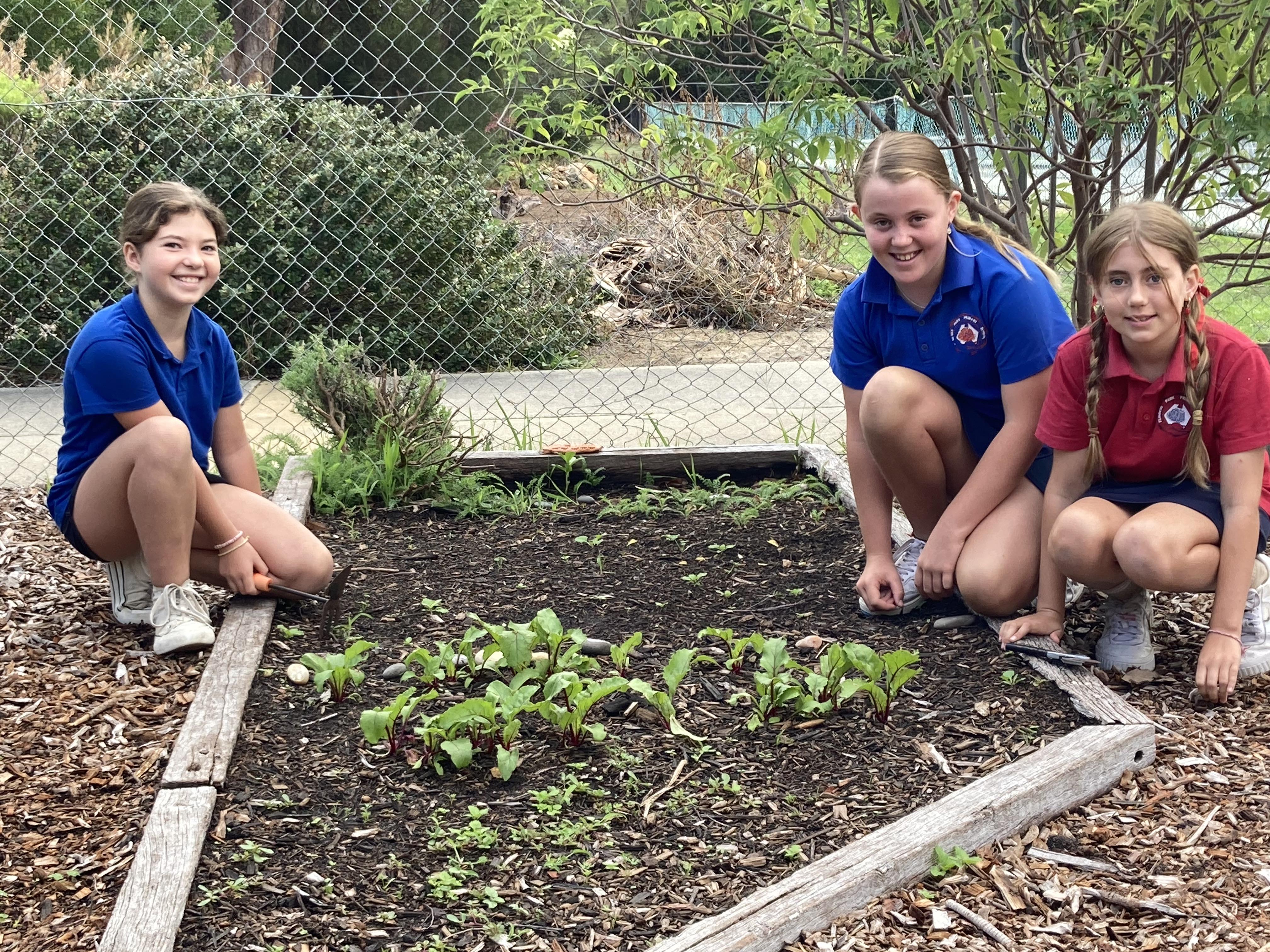 We garden every Monday afternoon to give the canteen fresh fruit and veggies to use in lunch orders. We garden to help the environment, learn about nature, and develop life skills in the garden. We also have a lot of fun and get a little messy.