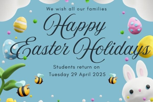 I wish all our students and staff a wonderful holiday break and hope it’s filled with rest, fun, and time with loved ones. I look forward to seeing everyone back at school, refreshed and excited for Term 2.
