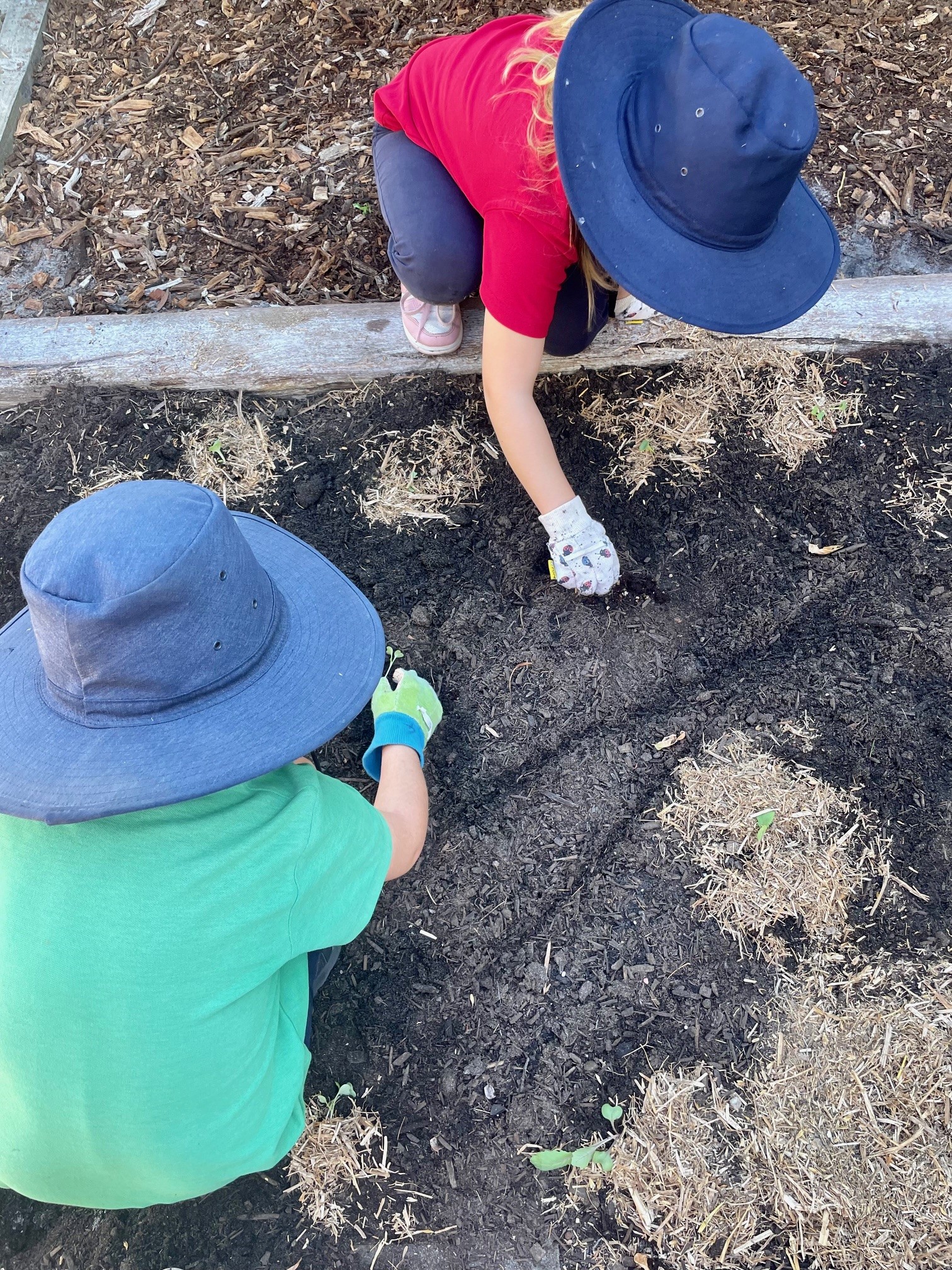 On Wednesday, the children and their teachers made the most of the beautiful Autumn day by planting a veggie garden in a previously unused area of the playground. The children planted broccoli, cauliflower, cabbage, peas and herbs. They are very excited to see their new garden grow and look forward to caring for and maintaining it throughout the term.
