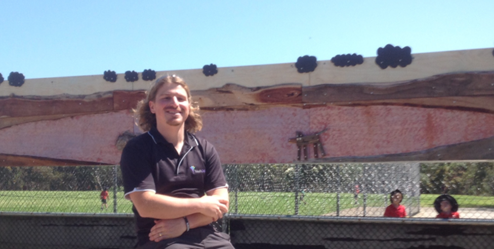 To develop the mural Mitch first consulted with Aboriginal Elder Treasy Woods and worked on the design with Ms McNamara and students from (then) 4.2.
